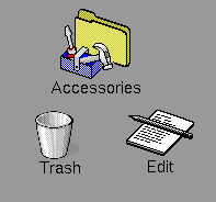 Some icons represent unique functions and are illustrated accordingly. The Trash icon, for example, represents the Trash desktop, which contains your discarded files and directories.