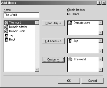 [3] If you want to follow our example in this section, and your network doesn't have any Windows systems offering shares, see Chapter 5 for directions on how to create one. Make sure you understand how to set up shares before continuing with the directions presented here!