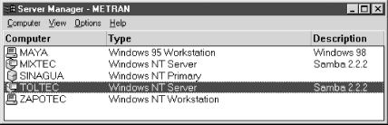 As you can see, we've added both toltec and mixtec to a domain for which the Windows NT 4.0 Server system, sinagua, is the primary domain controller.