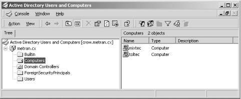 Figure 4-17. The Windows 2000 Active Directory Users and Computers window