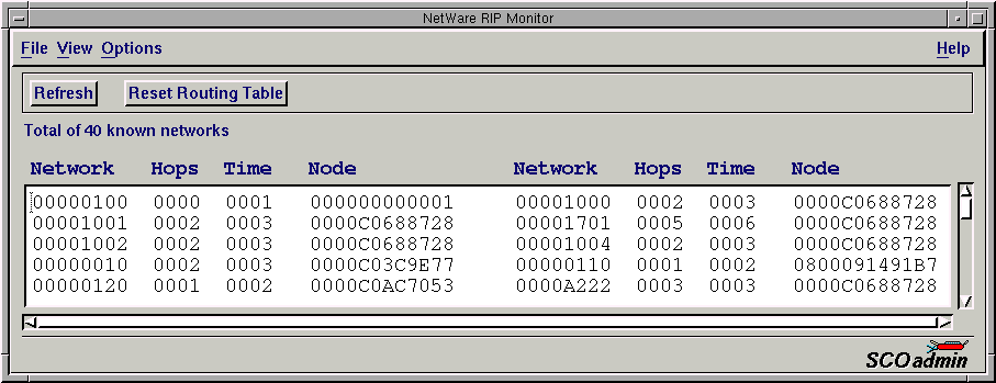 All hosts that are capable of acting as NetWare routers maintain a routing information table. This allows the routers to forward packets by the best possible route. SCO IPX/SPX can be configured to act as a router , and thus all SCO IPX/SPX servers maintain a routing information table. For more information about the routing information table, see ``Packet delivery''. For more information about configuring an SCO OpenServer system as a router, see NPSConfig(SFF) for more information.