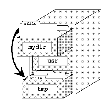 The cp command copies files. To copy a file, type cp, the name of the file you want to copy, and the name you want to call the copy, then press <Enter>. Unlike DOS, a UNIX system does not tell you that the copy succeeded, but it shows you an error message if it did not. You can use a pathname (a directory) for the name of the copy to put a copy of a file in a particular directory. In this case, unless you specify otherwise, the copied file will be given the same name as the original but in a different directory.