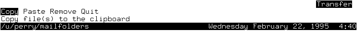 To use the clipboard, select Transfer from the Manager menu. A menu like the following appears:
