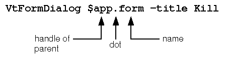 VtFormDialog(VTCL) typifies an SCO Visual Tcl command: