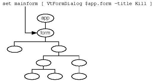 Notice the string, ``Kill,'' specified by using the -title option to VtFormDialog, appears in the title bar of the form.