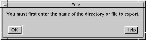 In the example that follows, the user is prompted to try again by doing some action (entering a name). They click on OK and they are returned to the dialog for entering the directory name. (In other scenarios, a Cancel key would appear in the dialog box that would allow the user to abort.)