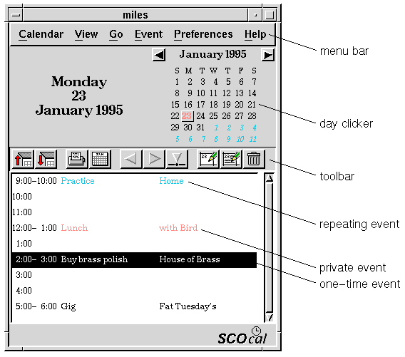 | Calendar | View | Go | Event | Preferences |