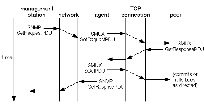 However, if all peers accepted the set operation, the agent issues a ``commit'' SOutPDU to all peers saying, in effect, ``Proceed with the set operation.''