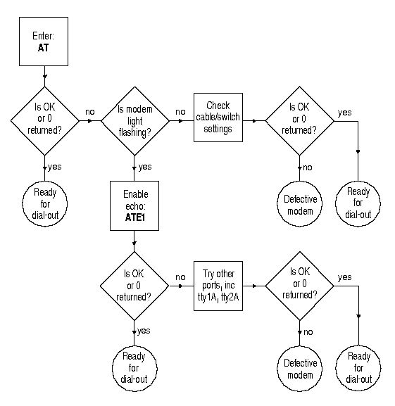 If you do not see a message indicating that the modem is ready to accept commands: