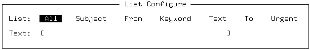 You are then prompted to choose from among a set of options; whether to list messages on the basis of subject, who originated them, keyword, title, some text, their destination, or whether they are tagged as urgent: