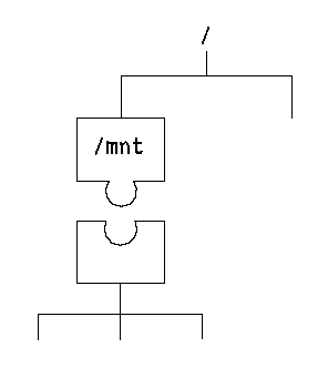 $ mnt /mntThe /mnt directory is a mount point; when a device is mounted on it that device's root directory appears in the filesystem instead of /mnt. Any files that existed in /mnt before the new filesystem was mounted on it are obscured, although they will be accessible again when the filesystem is unmounted.
