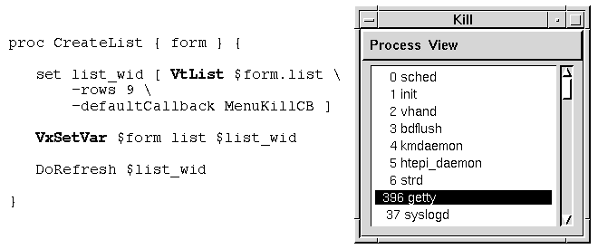 Creating the process list (VtList, VxSetVar)