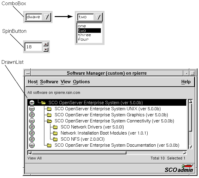 In addition to the Motif widget set, SCO Visual Tcl also supports: